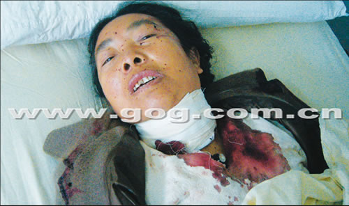 昨日下午,記者在貴醫(yī)附院看到了這名躺在病床上的老人。老人大約50多歲年紀(jì),女性,衣著較為整潔。接診護(hù)士告訴記者,老人剛被送到醫(yī)院的時(shí)候可以說(shuō)話,但是問(wèn)及家里的情況時(shí),老人卻拒不回答。同時(shí),護(hù)士還表示從老人的只言片語(yǔ)中聽到,老人說(shuō)咽喉部位插的水果刀是她自己捅的。