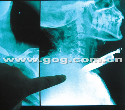 貴醫(yī)附院耳鼻喉科主治醫(yī)生王曉云告訴記者,老人被送到醫(yī)院時(shí),喉嚨上插著一把水果刀,進(jìn)入喉嚨的刀鋒部分大約有6.5公分。王曉云說(shuō):“經(jīng)檢查,老人頸部和肺尖受傷,生命垂危。由于水果刀可能傷到大動(dòng)脈,手術(shù)有風(fēng)險(xiǎn),要求家屬簽字,但老人一直不透露家人的信息,我們醫(yī)院也很為難!