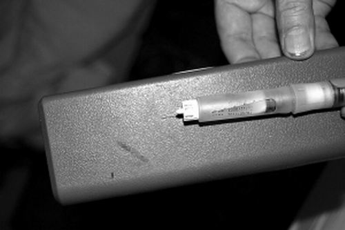 于先生告訴記者,他的父親患糖尿病已經(jīng)4年了,一直靠打人工胰島素維持。1月2日17時(shí)50分,他的妹妹像往常一樣拿出筆式注射器準(zhǔn)備為父親注射胰島素,當(dāng)針頭扎入父親的腹部推完藥液拔出針時(shí),卻怎么也找不到注射器的針頭了。這下子可把全家人嚇壞了,他們立即撥打了120急救電話。