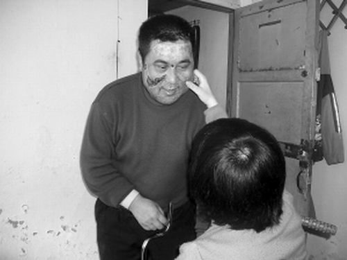 家住龍?zhí)秴^(qū)鄭州路山前西區(qū)的居民鐘寶成今年44歲,妻子15年前因遭遇車禍造成高位截癱,家中非常貧困。4年前,他不幸患上牛皮癬,因無錢醫(yī)治,一直到嚴(yán)重了,才找人用祖?zhèn)髅胤结t(yī)治,結(jié)果出現(xiàn)過敏和感染,整個臉的皮膚全部被破壞掉了。