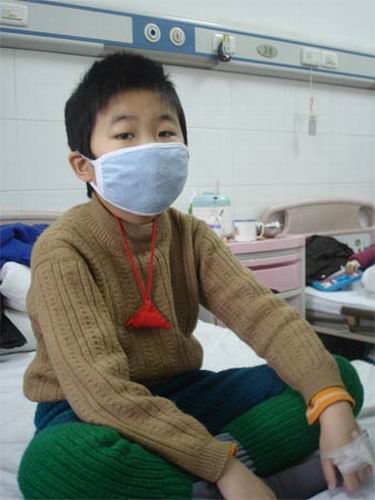 昨日下午3時(shí),記者進(jìn)入軒軒的病房,見(jiàn)有人來(lái),軒軒勉強(qiáng)地從病床上支撐著坐了起來(lái),一副口罩掛在孩子稚嫩的臉上,將整個(gè)面部遮擋了大半部分,只是一雙雖受病痛折磨依然眼光堅(jiān)毅的眼睛露在了外面。萬(wàn)玲告訴記者,這是因?yàn)榕录?xì)菌感染引起更糟糕的結(jié)果,所以遵醫(yī)囑戴起來(lái)的,每天只可以摘下一小會(huì)。小宇軒看到記者并沒(méi)有顯出害怕,但是虛弱的表情已經(jīng)寫(xiě)在了臉上,孩子的身上開(kāi)始出現(xiàn)很多的血印。一雙原來(lái)白嫩的小手已清晰可見(jiàn)蠟黃色了,手背上則是剛扎完針包著的紗布。