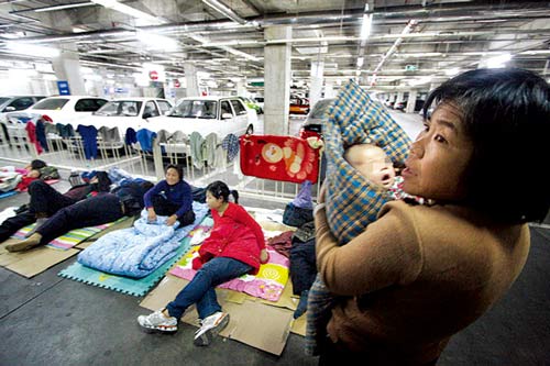 近日氣溫連續(xù)下降,北京兒童醫(yī)院地下車庫的“人氣”又旺了起來——為了排隊掛號,不少家長和病童夜宿地下車庫。