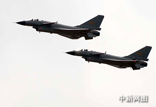 兩架殲十戰(zhàn)機(jī)在珠海航展“中國航空日”上聯(lián)袂進(jìn)行飛行表演。 孫自法 攝