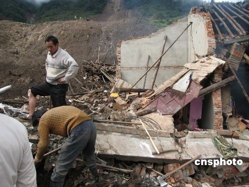 圖為十一月六日,新華村村民回到被泥石流沖毀的家中尋找失蹤的親人。中新社發(fā) 劉子倩 攝