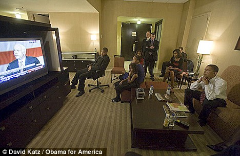 照片顯示,當選舉計票統(tǒng)計結果公布時,奧巴馬和他的家人在一起收看電視轉播。當奧巴馬22個月的競選旅程即將到達勝利終點時,奧巴馬擰著手,他前額的皺紋顯示,47歲的奧巴馬和他的家人仍然很緊張。隨后的照片顯示,他把腳放在咖啡桌上,身體向后倒去,可以明顯地看出他很疲勞。奧巴馬和其家人沒有表現(xiàn)出明顯的歡樂情緒,他清醒地意識到他面前的挑戰(zhàn)。