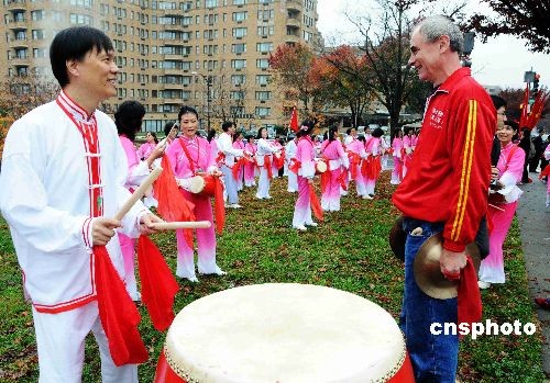 一位來(lái)自當(dāng)?shù)氐摹把笕恕北葼枺ㄓ遥┮呀?jīng)多次率領(lǐng)這支鑼鼓隊(duì)參加中國(guó)文化節(jié)日的活動(dòng)。