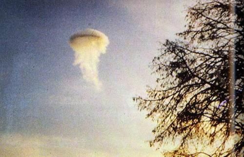 1974年11月17日早晨,勞爾森帶著他的愛犬在丹麥日德蘭半島散步,突然看到一團(tuán)白云里裹著一個外形奇特的物體。他在距離這個物體飛到大約250到300米遠(yuǎn)的地方時拍下了這張照片。