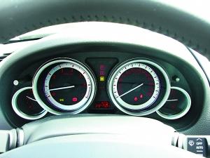 桶形儀表盤背景光同樣炫麗且具運(yùn)動氣息。