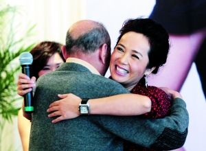 蔣雯麗本月雙喜臨門(mén),剛憑借《立春》獲得金雞影后,其導(dǎo)演處女作《我們天上見(jiàn)》又在韓國(guó)釜山電影節(jié)上榮膺“最受觀(guān)眾喜愛(ài)電影大獎(jiǎng)”。雙獎(jiǎng)在手的蔣雯麗昨日偕《我們天上見(jiàn)》的主演朱旭等在京慶功,可惜慶功宴上丈夫顧長(zhǎng)衛(wèi)姍姍來(lái)遲,活動(dòng)已經(jīng)結(jié)束了才出現(xiàn),連話(huà)都沒(méi)來(lái)得及說(shuō)上一句。