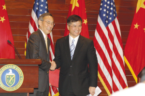 奧巴馬政府首次有兩位華裔入閣——駱家輝出任商務(wù)部長,朱棣文出任能源部長,這在美國史無前例,被看作美國華人參政的重要里程碑。