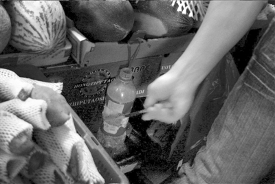 該市場管理員王女士說,市場里很多攤主都將水果刀放在礦泉水瓶里,主要是為了衛(wèi)生。當(dāng)記者提及瓶里的水是甜水時,她說,“不可能,我相信攤主不會這么干”。(王遠(yuǎn)志 商秋雯 彭科峰)
