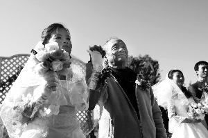 集體婚禮由一家婚戀網(wǎng)主辦,此次共有新人11對(duì),都是通過網(wǎng)絡(luò)走到一起的。吳介琴是中央美院退休教授,在新人里年齡最大,愛人蔣曉輝女士58歲,是成都鐵路系統(tǒng)退休員工。
