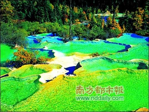 黃龍景區(qū)的爭(zhēng)艷池。