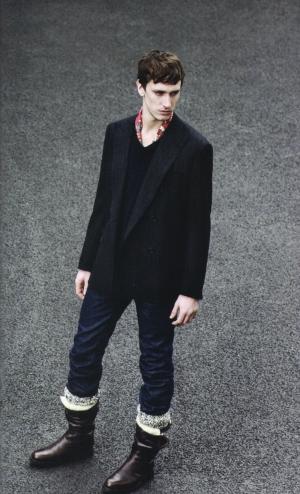 休閑西裝配隨性牛仔褲,頸間隱約露出一小段彩色方巾,這樣的男人已經(jīng)會令女人多看他一眼;如果他腳上蹬著的那雙中幫皮靴里不經(jīng)意地露出一截彩色毛線褲襪,那一定會引來探究的目光。這是今年秋冬大牌男裝設(shè)計師推出的最酷的“童趣”裝扮,讓男人借著孩提時代一雙彩色毛線褲襪回味童年時光,也算是一種心靈瑜珈吧。