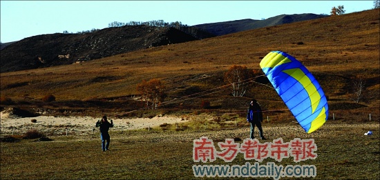 在草原上放風(fēng)箏實(shí)在是一件超爽的事。風(fēng)很大,稍稍跑一跑,風(fēng)箏就直飛上天了。但要注意的是重心必須比平時(shí)下沉,因?yàn)轱L(fēng)實(shí)在太大了,有把人吹走的嫌疑。同行有位肥佬一開(kāi)始掌握不了要領(lǐng),一下了摔倒在地上,呈現(xiàn)一個(gè)大大的“S”形,被大家取笑為“芙蓉姐姐”。