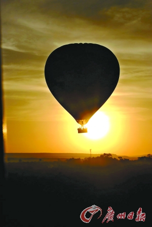 在澳大利亞許多城市,都設(shè)有熱氣球項(xiàng)目。例如在凱恩斯,乘坐熱氣球要從清晨開(kāi)始。凌晨四點(diǎn)鐘,乘坐熱氣球公司交通車來(lái)到一個(gè)較寬敞的山谷,坐上熱氣球時(shí),天色正朦朧發(fā)亮,大地似乎正在蘇醒一般。