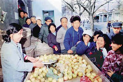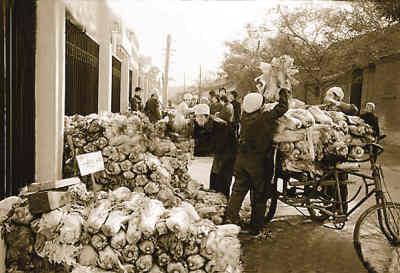 入秋的一天,年逾古稀的李玉珍老人,買來(lái)滿籃菜蔬,悠閑地坐在北京團(tuán)結(jié)湖公園里曬太陽(yáng)。當(dāng)年入秋搶著買大白菜,忙著腌白菜的事她都淡忘了。30年前,每當(dāng)秋風(fēng)一刮,她便早早收拾干凈大缸,手里捏著幾個(gè)錢,等著大白菜上市。那時(shí),大米、面粉憑票證限量供應(yīng)。李老太太說(shuō),那年月家家日子都過(guò)得緊巴巴的,普通人家一年到頭是咸菜,很少吃炒菜。如果誰(shuí)家燉上二斤肉,那真是香透半條街,大家跟著沾光兒。