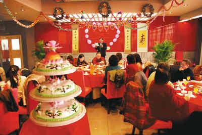 隨著生活水平的提高,在飯店里吃年夜飯、擺酒宴成為越來(lái)越多家庭的選擇。30年來(lái),改變的是吃飯的場(chǎng)所,不變的是熱鬧喜慶的氣氛。圖為2007年,鄭州市的一家人在酒店設(shè)宴為老人賀壽。王蕾攝