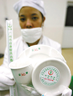 當(dāng)你去餐館用餐時(shí),是否被加收過1元的“放心碗”餐具費(fèi)?對于這套被塑料膠膜包裹的消毒餐具,你是否能夠不用茶水清洗而放心使用呢?由于目前缺少對餐具集中消毒企業(yè)的進(jìn)行監(jiān)管的法律法規(guī),消費(fèi)者對集中消毒碗筷缺乏信心,因此,廣州市人大代表建議暫不推行集中消毒碗筷。