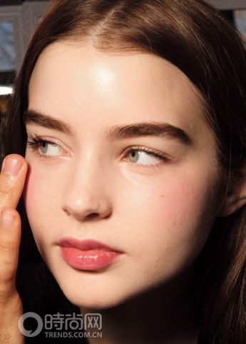 光澤感的妝容最容易突出和修飾面部輪廓,為了讓臉部線條更加完美,不妨使用不同色調(diào)粉底調(diào)配出自然日曬后的健康小麥色,然后用粉刷上妝。為了增強(qiáng)效果,不妨把古銅色均勻地涂在臉上。最后在兩頰和臉部輪廓掃上少許柔和的橘色,再以粉底刷加以融合,打造出健康迷人的輪廓。