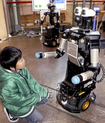據(jù)日本共同社報(bào)道,原來這是國際電氣通信基礎(chǔ)技術(shù)研究所(ATR,京都府精華町)等單位開展的一項(xiàng)機(jī)器人試驗(yàn)項(xiàng)目。身高114厘米的“Robovie-II”機(jī)器人擅長“察言觀色”,對于猶豫不定的客人,它會一邊招手一邊接近客人,詢問“需要幫忙嗎?”,隨后用聲音或動作帶客人前往想去的地方。