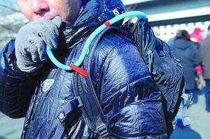 戶外的東西比較挺括,沖鋒衣、沖鋒褲、登山鞋走起來感覺都帶著風(fēng)似的,還有這個(gè)蜿蜒的管子能到達(dá)需要滋潤的嘴巴的水壺。只有在野外,那種感覺才對(duì),有點(diǎn)投入自然懷抱的意思,可是在城市里燈紅酒綠的,你穿成那樣就很傻了。戶外裝的顏色都是鮮亮亮的,橙色、大紅、大綠、大藍(lán),標(biāo)志性特別強(qiáng),就怕別人不知道你是玩戶外的,我覺得一身戶外裝束很“二”哈。
