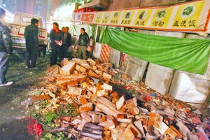 據(jù)介紹,小吃店倒塌的外墻砸到了兩個(gè)賣油炸食品的攤位。幸運(yùn)的是當(dāng)時(shí)兩個(gè)攤主都在幾米遠(yuǎn)外的地方聊天,攤位也沒(méi)有顧客,因此未有人員受傷。