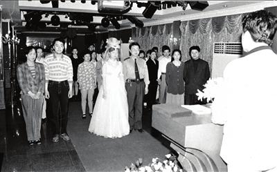 1998年5月11日,婚姻登記員向登記領(lǐng)結(jié)婚證的青年宣讀法律規(guī)定的有關(guān)夫妻的權(quán)利與義務(wù)。濟(jì)南市民政局婚姻登記管理處當(dāng)年在向婚姻當(dāng)事人分發(fā)結(jié)婚證書時(shí),一改過去簡單、隨意的現(xiàn)象,而是為男女雙方舉行發(fā)證儀式,讓新婚夫婦感受到領(lǐng)取結(jié)婚證的神圣與莊嚴(yán)。