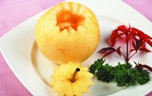 4. 把擇凈的燕窩放入做好的雪梨盅,蓋上剩余部分,放入燉盅,再倒入煮好的川貝水、清水和冰糖,燉盅加蓋文火隔水燉2小時即可。