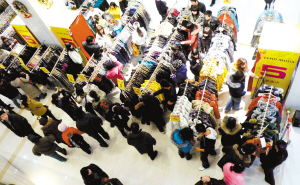 記者了解到,去年元旦北京百貨商場銷售增長20%多,今年受金融危機(jī)等因素影響增幅有所下降。今年元旦期間,北京商場都加大了折扣促銷力度,服裝普遍在6折以下。記者前日在甘家口商場看到,全場商品都在進(jìn)行滿99減50的活動,耐克、衣戀等平日里很少打折的品牌專賣店內(nèi),擠滿了消費(fèi)者。耐克專區(qū)的相關(guān)負(fù)責(zé)人告訴記者,“往常只有在折扣店才有對折的優(yōu)惠,今年是頭一次”。另外,中關(guān)村購物廣場等商場的化妝品也參與了商場“滿減”活動。