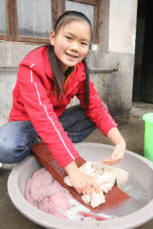 “這點困難算不了什么,美好的明天在向我招手!”近日,當(dāng)記者在長沙縣安沙鎮(zhèn)龍華新村見到“感動長沙十佳少年”葉果時,她正冒著寒冬的細(xì)雨,蹲在田邊為父親洗衣服。一雙小手已經(jīng)被凍得紅腫,她卻對記者報以燦爛的微笑。
