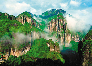 第二天的游程更精彩,我們早上去了大龍湫,到底占了個“大”字,水勢落差達197米,是小龍湫的整整3倍。沿著蜿蜒曲折的游道,觀兩邊奇形怪狀的山峰,那芙蓉峰初看像一把大剪刀,導(dǎo)游說還是“張小泉”牌的呢?蓳Q一個角度居然變成了帆船的桅桿了,再走幾步看又幻作一只啄木鳥,再走再瞧,又像極了一頭要偷吃蜂蜜的狗熊,真是移步換景。