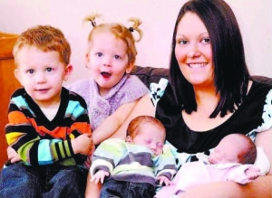 英國(guó)樸次茅斯市22歲母親卡莉·奧布賴恩和28歲男友約翰·格朗特在一起生活時(shí),為了避孕她幾乎每天都堅(jiān)持服用避孕藥?闪羁ɡ蜃鰤(mèng)也沒(méi)想到的是,避孕藥非但對(duì)她毫無(wú)效果,并且她還在兩年時(shí)間中接連生下了兩組可愛(ài)的雙胞胎!