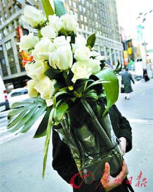 情人節(jié)來臨之際,美國(guó)街頭的商販正兜售白玫瑰花!