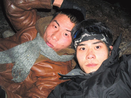 王興波:我們第一天走到長(zhǎng)坪溝的木騾子,手機(jī)就沒(méi)有信號(hào)了。為了節(jié)約電,我們都關(guān)了機(jī)。之后一路上都沒(méi)有信號(hào)。第八天(2月5日),由于無(wú)路可走,我們爬到半山腰,前面是懸崖,我們又只好往山下降,忽然一塊石頭從山上滾下來(lái),我頭一歪,躲了過(guò)去。當(dāng)我還沒(méi)有緩過(guò)氣來(lái),忽然,一個(gè)黑影又掉下來(lái),只聽(tīng)撲通一聲,劉亞超從山上滾到了河里。他喊了一聲:“大波,救我”,瞬間就被激流沖走。幸好他抱住了一塊石頭。我好不容易用繩子把他拉了回來(lái)。那次,我們的手機(jī)全都進(jìn)了水。2月8日,我們?cè)诒粌山忝镁鹊牡胤饺匀粵](méi)有信號(hào)。送我們到映秀時(shí),才有了信號(hào),我們才用那位大哥的手機(jī)給青青(劉亞超的女朋友)打了第一個(gè)電話。