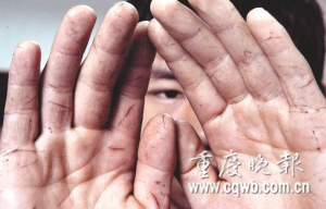 昨日,記者細(xì)數(shù)小志雙手傷口,多達26道,遍及手掌、手背和手指,最長的有四五厘米。