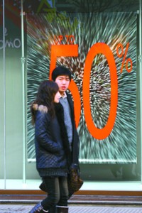 面對(duì)節(jié)節(jié)下降的銷售數(shù)字,商家惟有抓住一個(gè)個(gè)節(jié)日商機(jī)。上個(gè)雙休日,商家圍繞元宵節(jié)展開的促銷活動(dòng)延續(xù)了春節(jié)時(shí)的熱鬧,而本周,針對(duì)情人節(jié)的促銷活動(dòng)又呼之欲出。比如,第一八佰伴將推出 “滿399送199”的活動(dòng);第六百貨可能推出“滿200送200”的促銷;新世界城將在“冬令商品3折起、春季新品8折起”的基礎(chǔ)上再推出 “購(gòu)物滿額分級(jí)送禮”的活動(dòng),以雙人份的五星級(jí)酒店入住券、自助餐券、電影票、蠟像館門票來吸引顧客多多埋單;太平洋百貨的“冬裝最后出清”活動(dòng)則推出了“少女裝出清3折起,第二件再享8折”的優(yōu)惠……
