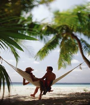 乘坐多尼船其實沒有固定的去處,就是在海上漂流,困了睡,睡了吃,Dhoni Mighili的情人講究Wherever和Whenever,只要愿意,貼身管家會按照吩咐當(dāng)場調(diào)制情人中意的餐飲。每年情人節(jié)前后,是南十字星座和我國所說的銀河距離馬爾代夫最近的時候,情人們可以躺在甲板上了望夜空。在Dhoni Mighili上玩膩了,乘船到相鄰的Rangali島去,島上海底五米深處是希爾頓酒店新建成的海底餐廳Ithaa,餐廳僅有六個桌位,恰好和Dhoni Mighili的海灘屋數(shù)目一致,在這里用餐雖說價錢昂貴,但這是情人節(jié),吃的是情調(diào)、是氣氛、也是一份不變的諾言。