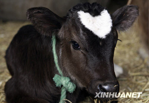 山崎告訴新華社記者,山君農(nóng)場(chǎng)已開辦55年,自己也經(jīng)營了25年,每年出生的牛犢不下30頭,但頭長這樣漂亮心形圖案的牛還是第一次見到。山崎說:“它的出生讓我感到新奇,希望在當(dāng)前的金融危機(jī)下,它能給我?guī)砗眠\(yùn)!”