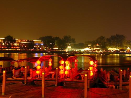 什剎海的櫓船上,盡管太多燈紅酒綠已讓它成了塊俗地兒,但憑著那片水里的槳聲燈影及岸上的柳條和風(fēng),這頭銜依然非它莫屬。