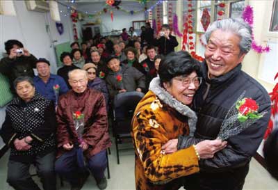 “親愛(ài)的,感謝你!”昨天下午,東城區(qū)史家社區(qū)居委會(huì)內(nèi),近20對(duì)年近古稀的老夫妻聚在一起,其中4對(duì)已過(guò)金婚。他們學(xué)習(xí)牽手、擁抱、送玫瑰,“惡補(bǔ)”情人節(jié)知識(shí)。相濡以沫的老夫妻們,第一次嘗試開口向?qū)Ψ酱舐曊f(shuō)愛(ài),雙方都不好意思地扭過(guò)頭,現(xiàn)場(chǎng)一片掌聲。