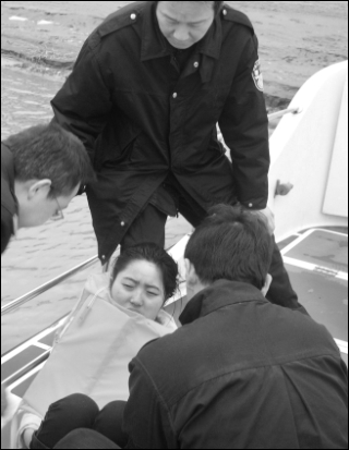 獲救女子上船后奄奄一息,口吐鮮血,不能說話,民警用艇上的干衣服給她取暖。巡邏艇馬上駛向最近的大橋邊,鄂州市120醫(yī)護(hù)人員已在碼頭等候,女子被送往鄂州市中心醫(yī)院搶救。警方隨后擴(kuò)大搜尋到長(zhǎng)江下游7000米遠(yuǎn)的浠水巴河水域,沒有找到失蹤的男子。