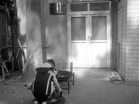 昨日春光燦爛,肖林親友們卻沒(méi)心情享受美景,他們齊齊來(lái)到烈士陵園等待法醫(yī)鑒定的結(jié)果。法醫(yī)鑒定工作室門外,燃著兩根紅燭,擺了臺(tái)供燒紙錢的鐵鍋,一名身著運(yùn)動(dòng)服的少年朝屋里躬身行禮,然后長(zhǎng)跪在草墊上淚流滿面。他是肖林的兒子肖理,年僅15歲。僅在一夜之間,他就不得不面對(duì)突然失去父親的現(xiàn)實(shí)。