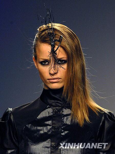 在第49屆馬德里時裝周上,模特頭部的各種精心修飾使得時裝設(shè)計師的作品得到了更好的詮釋。新華社記者陳海通攝