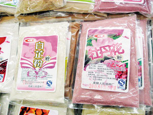 些敷臉的粉末不在護(hù)膚品分類中出現(xiàn),而是在超市的面粉區(qū)域銷售,也有近百種之多,將水果、蔬菜以及堅(jiān)果的提取物同面粉結(jié)合,這樣的粉可以用溫水調(diào)和,用小火或微波爐煮制食用,也可以加蛋清或蜂蜜敷臉,其實(shí)喜歡DIY面膜的女士們一定知道,用蛋黃混合面粉而成的面膜薄薄地涂在臉上,可滋潤(rùn)皮膚。只不過(guò)現(xiàn)在我們食用的面粉可以用這些特殊的面粉代替了,會(huì)有更多的功效在里面,比如美白、抗敏、排毒等功效?蛇x擇的有杏仁粉、枸杞粉、玫瑰花粉、苦瓜粉、淮山粉、薏仁粉、檸檬粉、蘆薈粉、白芷粉、紅豆粉、綠豆粉、杜鵑花粉、黑木耳粉、荷葉粉等等。70克一小袋兒要花費(fèi)近17元,顯然敷臉比食用更劃算些。(文/攝 孫小雅)