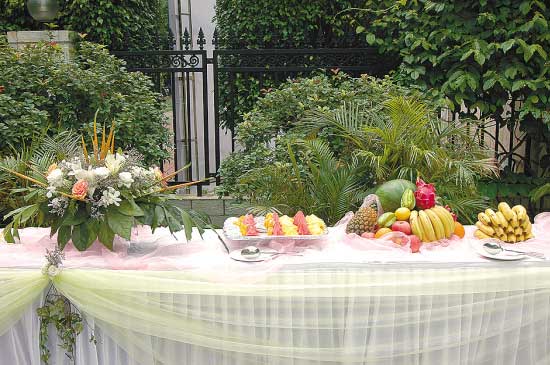 廣州的城區(qū)在不斷擴(kuò)大,要在一天內(nèi)行中式之禮,接新娘、入門、回門再到婚宴所在,一系列的步驟都不得不面對交通問題。再加上外地媳婦本地郎的組合越來越多,更多新人選擇放棄奔波周折,干脆在擺酒的食肆附近或者酒店里租一個(gè)房間做新房。那樣的話,要花在路上的時(shí)間大大減少,也有了大半天的空余時(shí)間,正好可以舉行一個(gè)小型的草坪婚禮。