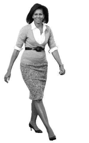 米歇爾的形象每天都有變化,這讓她與喜歡褲裝套服的勞拉·布什和希拉里·克林頓形成鮮明對(duì)比。米歇爾會(huì)重復(fù)穿同樣的衣服,不過會(huì)配上新飾品,這也是普通女性的做法。