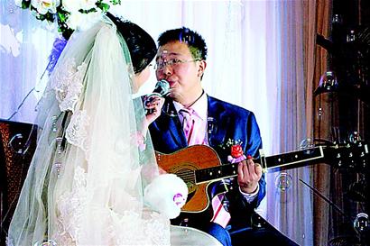 讓曉丹想不到的是,憨厚的李錚不但會進(jìn)廚房,而且是個搖滾迷,彈得一手好吉他。曉丹說,他們的婚禮,所有環(huán)節(jié)都是李錚一個人策劃的,“對白、彈吉他、嘉賓祝福、以音樂劇的形式,全是他想的,他原本還想不要主持人的!崩铄P的對白大部分是自創(chuàng)的,“他從小學(xué)起就不喜歡背書,但沒想到這么長的告白,他花了兩個晚上就背得滾瓜爛熟!保ㄋ谓ㄇ伲