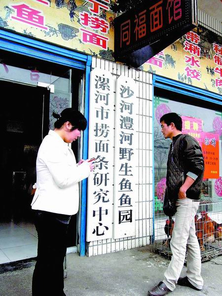 漯河市工商局一位工作人員告訴記者,這家“撈面條研究中心”并沒有注冊(cè),掛這樣的招牌不太妥當(dāng),需要整改。(劉廣超文圖)