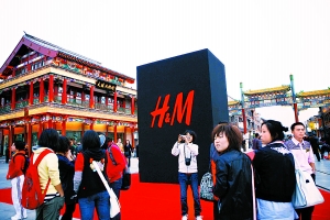 “H&M登陸北京了!希望我們能為北京人帶來(lái)更多的著裝靈感!鄙衔,有著62年歷史的瑞典國(guó)際服裝品牌Hennes & Mauritz AB(H&M)在前門(mén)大街A16棟,開(kāi)出北京首家旗艦店,這令公司的高層贊嘆萬(wàn)千。專(zhuān)賣(mài)店2000平方米,開(kāi)業(yè)第一天就推出了“Matthew Williamson for H&M”春季獨(dú)家系列女裝,Matthew Williamson是英國(guó)最當(dāng)紅的設(shè)計(jì)師,他為H&M打造的必備假日單品也將全球同步上市。
